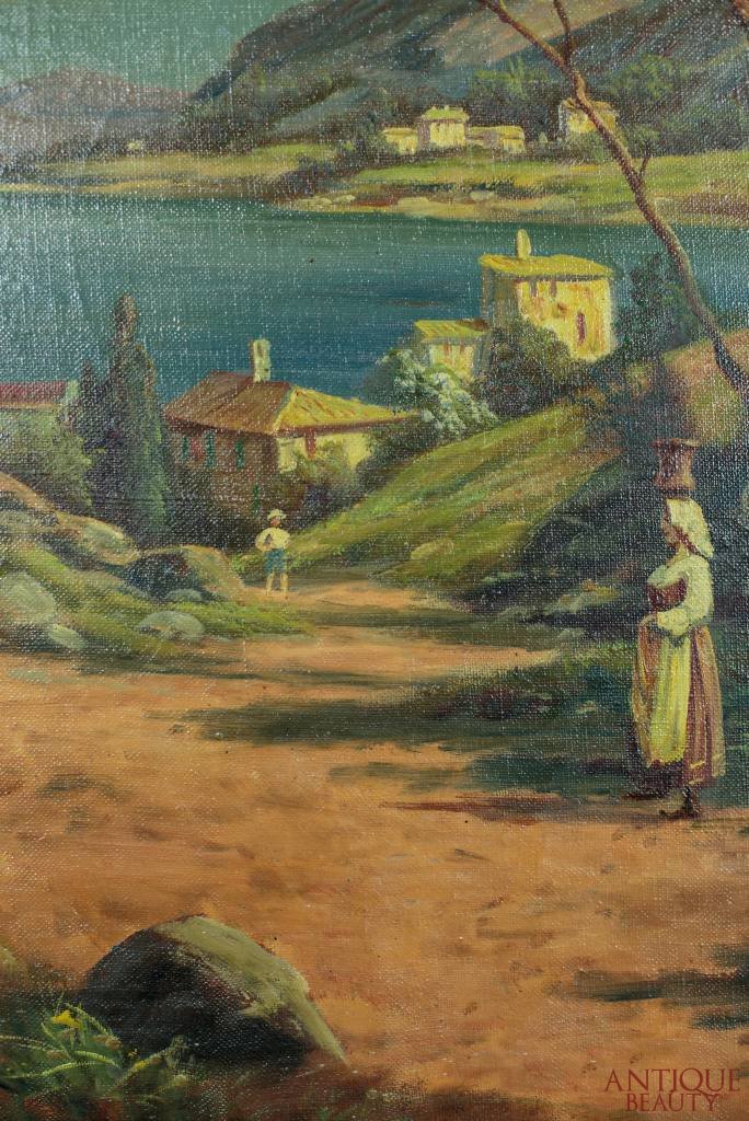 The painting from the early 20th century, depicting Italian landscape with staffage.