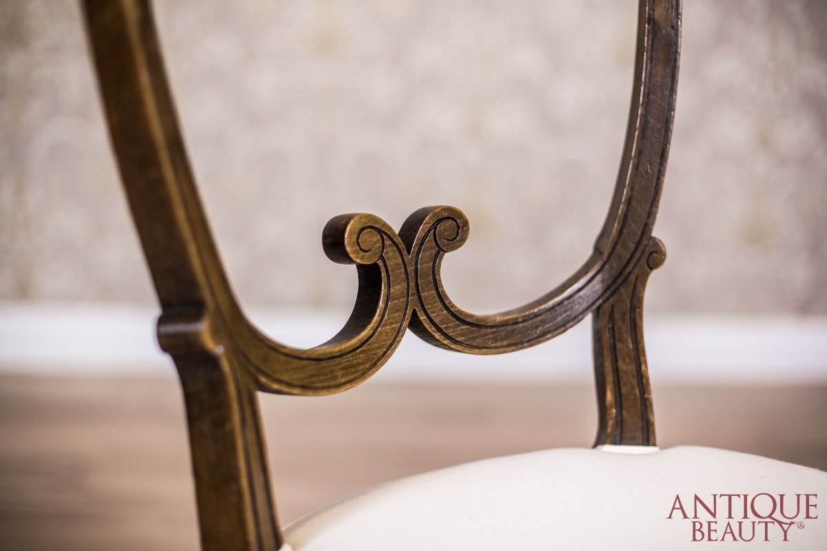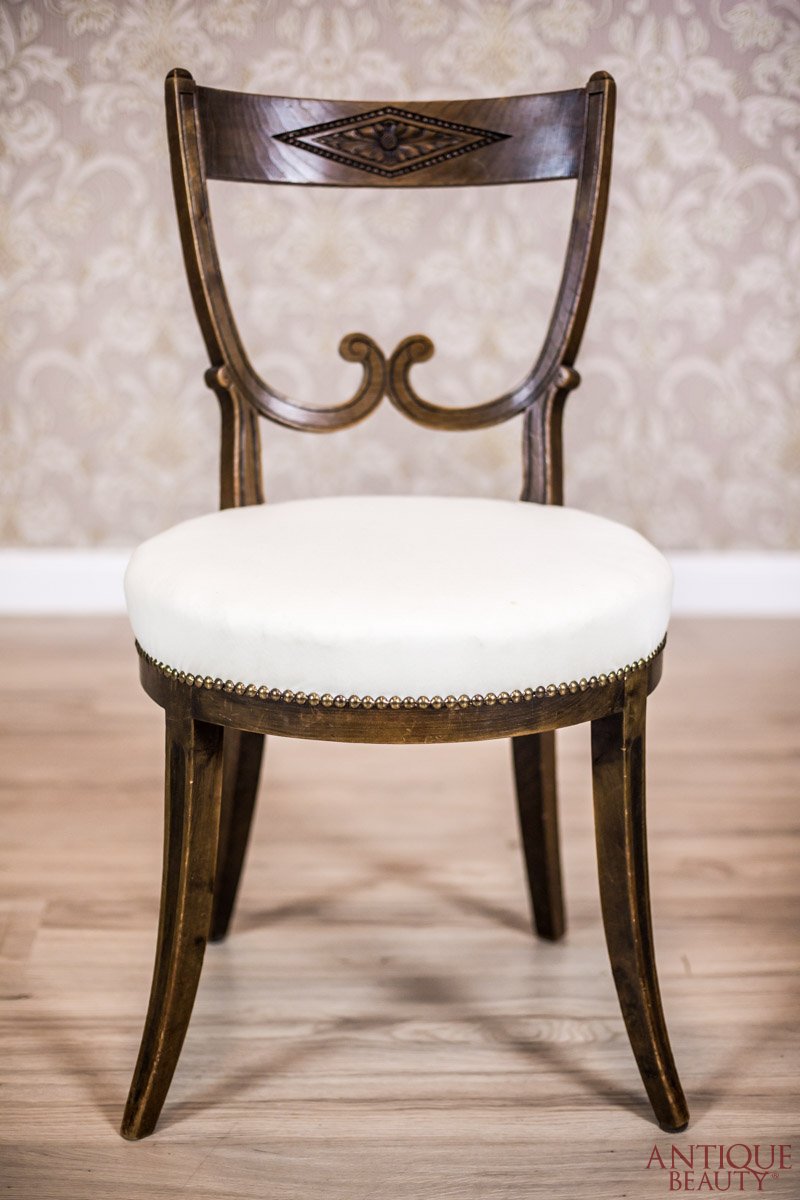 Krzesła wsparte na nogach typu greckiego z oparciami w rodzaju dwuszczeblinowych.