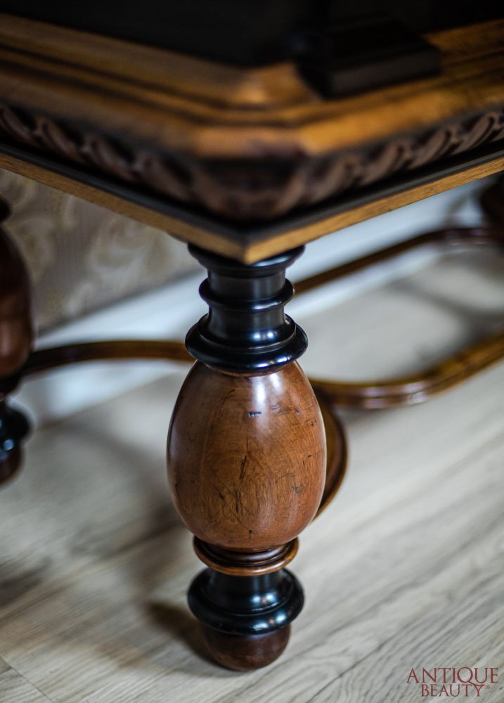 Całość wsparta na toczonych nogach spiętych łączyną i zwieńczona